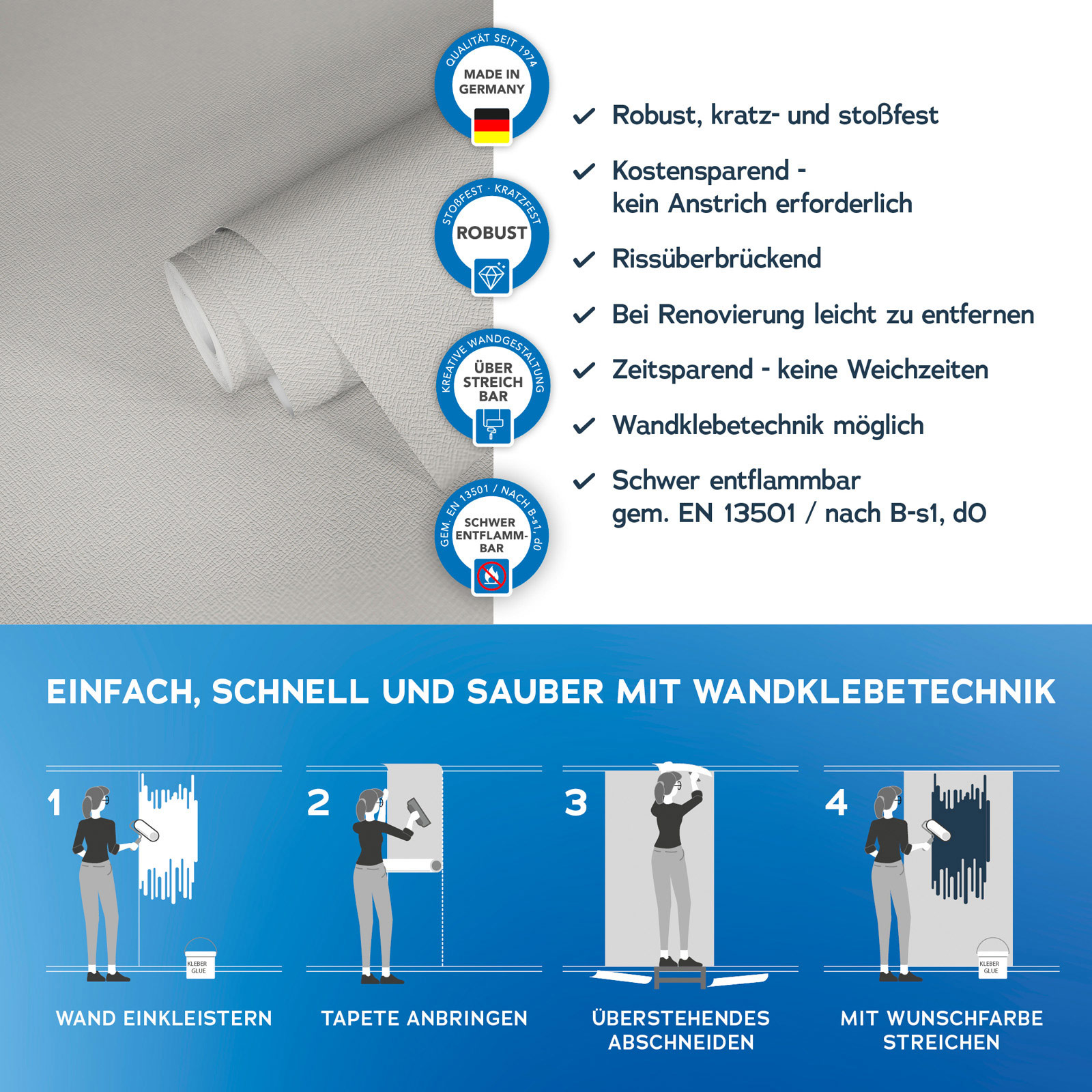 Mit der Meistervlies 8 Kollektion setzen Sie auf Qualität und Langlebigkeit. Die hochwertigen Vliestapeten sind besonders robust und langlebig. Dank der einfachen Verarbeitung und der Möglichkeit, die Tapeten mehrfach zu überstreichen, sind sie äußerst flexibel einsetzbar. Ob im Wohnbereich, im Büro oder in den eigenen vier Wänden Meistervlies 8 bietet die perfekte Lösung für jeden Raum.