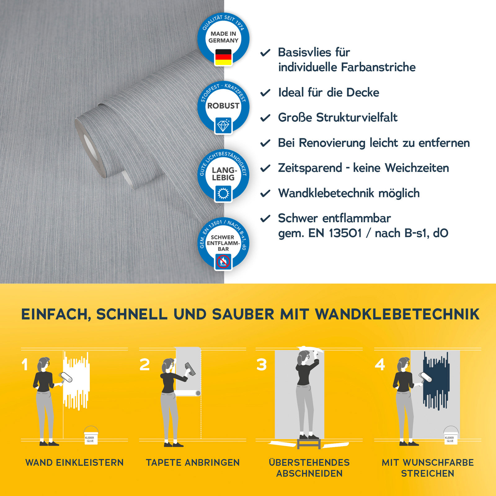 Mit der Meistervlies 8 Kollektion setzen Sie auf Qualität und Langlebigkeit. Die hochwertigen Vliestapeten sind besonders robust und langlebig. Dank der einfachen Verarbeitung und der Möglichkeit, die Tapeten mehrfach zu überstreichen, sind sie äußerst flexibel einsetzbar. Ob im Wohnbereich, im Büro oder in den eigenen vier Wänden Meistervlies 8 bietet die perfekte Lösung für jeden Raum.