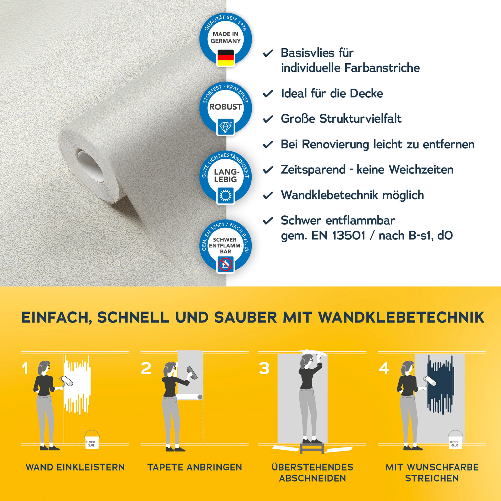 Mit der Meistervlies 8 Kollektion setzen Sie auf Qualität und Langlebigkeit. Die hochwertigen Vliestapeten sind besonders robust und langlebig. Dank der einfachen Verarbeitung und der Möglichkeit, die Tapeten mehrfach zu überstreichen, sind sie äußerst flexibel einsetzbar. Ob im Wohnbereich, im Büro oder in den eigenen vier Wänden Meistervlies 8 bietet die perfekte Lösung für jeden Raum.