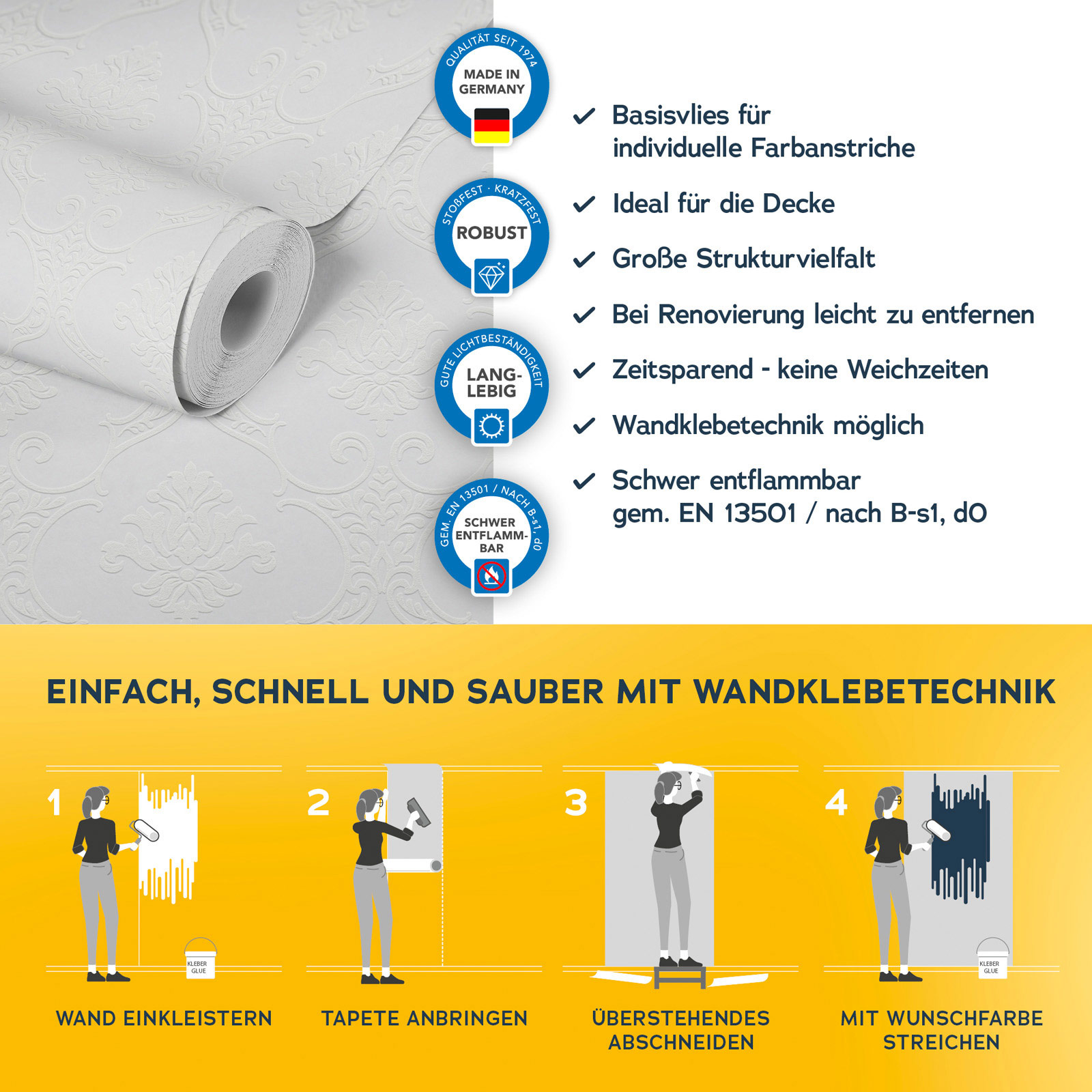 Mit der Meistervlies 8 Kollektion setzen Sie auf Qualität und Langlebigkeit. Die hochwertigen Vliestapeten sind besonders robust und langlebig. Dank der einfachen Verarbeitung und der Möglichkeit, die Tapeten mehrfach zu überstreichen, sind sie äußerst flexibel einsetzbar. Ob im Wohnbereich, im Büro oder in den eigenen vier Wänden Meistervlies 8 bietet die perfekte Lösung für jeden Raum.