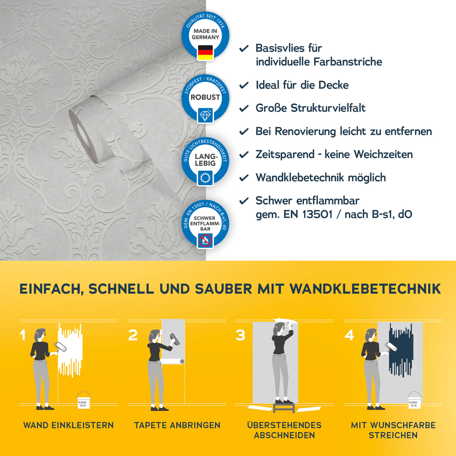 Mit der Meistervlies 8 Kollektion setzen Sie auf Qualität und Langlebigkeit. Die hochwertigen Vliestapeten sind besonders robust und langlebig. Dank der einfachen Verarbeitung und der Möglichkeit, die Tapeten mehrfach zu überstreichen, sind sie äußerst flexibel einsetzbar. Ob im Wohnbereich, im Büro oder in den eigenen vier Wänden Meistervlies 8 bietet die perfekte Lösung für jeden Raum.