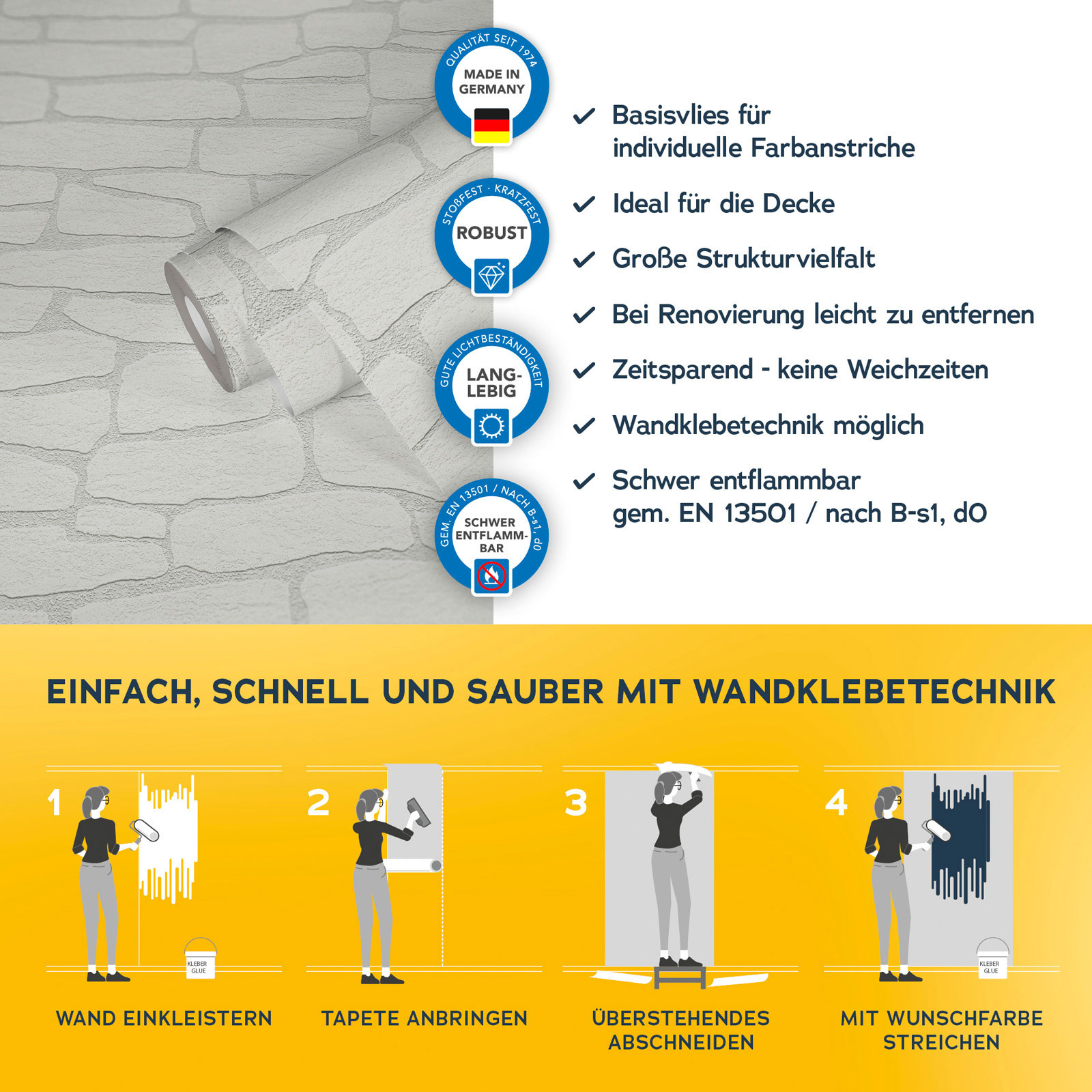 Mit der Meistervlies 8 Kollektion setzen Sie auf Qualität und Langlebigkeit. Die hochwertigen Vliestapeten sind besonders robust und langlebig. Dank der einfachen Verarbeitung und der Möglichkeit, die Tapeten mehrfach zu überstreichen, sind sie äußerst flexibel einsetzbar. Ob im Wohnbereich, im Büro oder in den eigenen vier Wänden Meistervlies 8 bietet die perfekte Lösung für jeden Raum.
