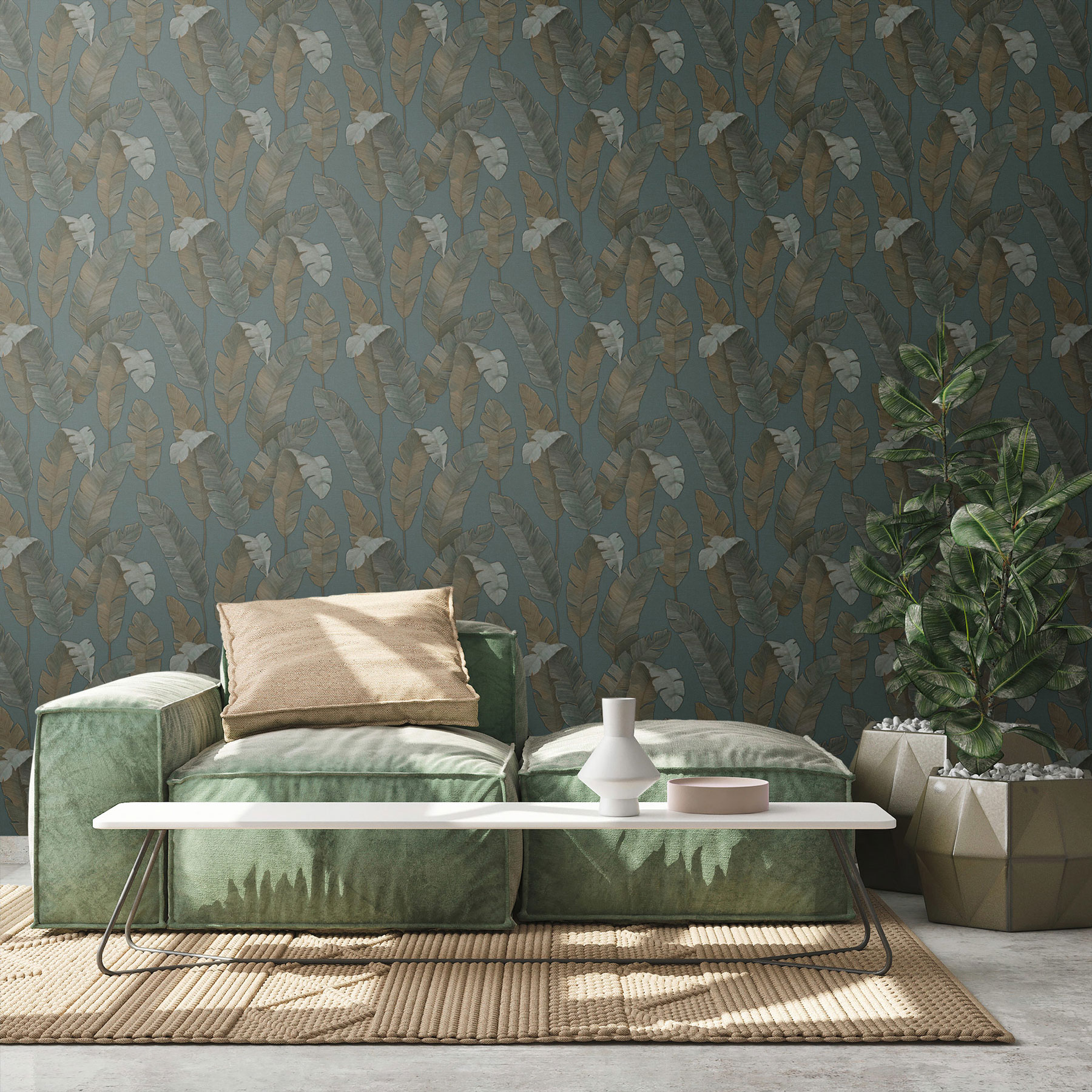 AS Vliestapete MS Travel Styles Blätter Petrol 392183