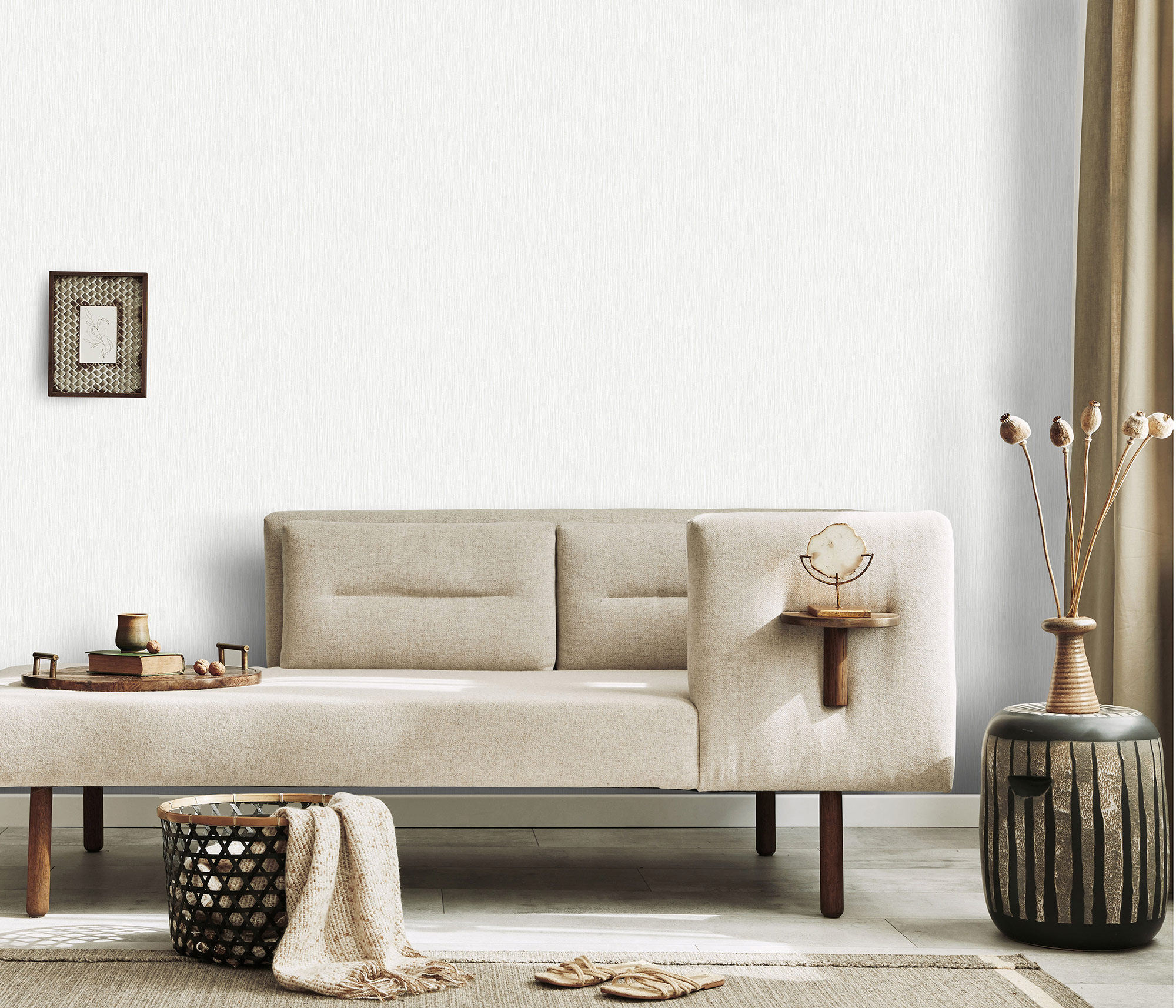 Diese Vliestapete mit raffinierter Unistruktur sorgt für individuelle und ausgefallende Wände. Besonders raffiniert ist die feine Längsstruktur, die für eine lebendige Optik sorgt. Das introvertierte Farbspiel zaubert Entspannung und Stille in den Raum.