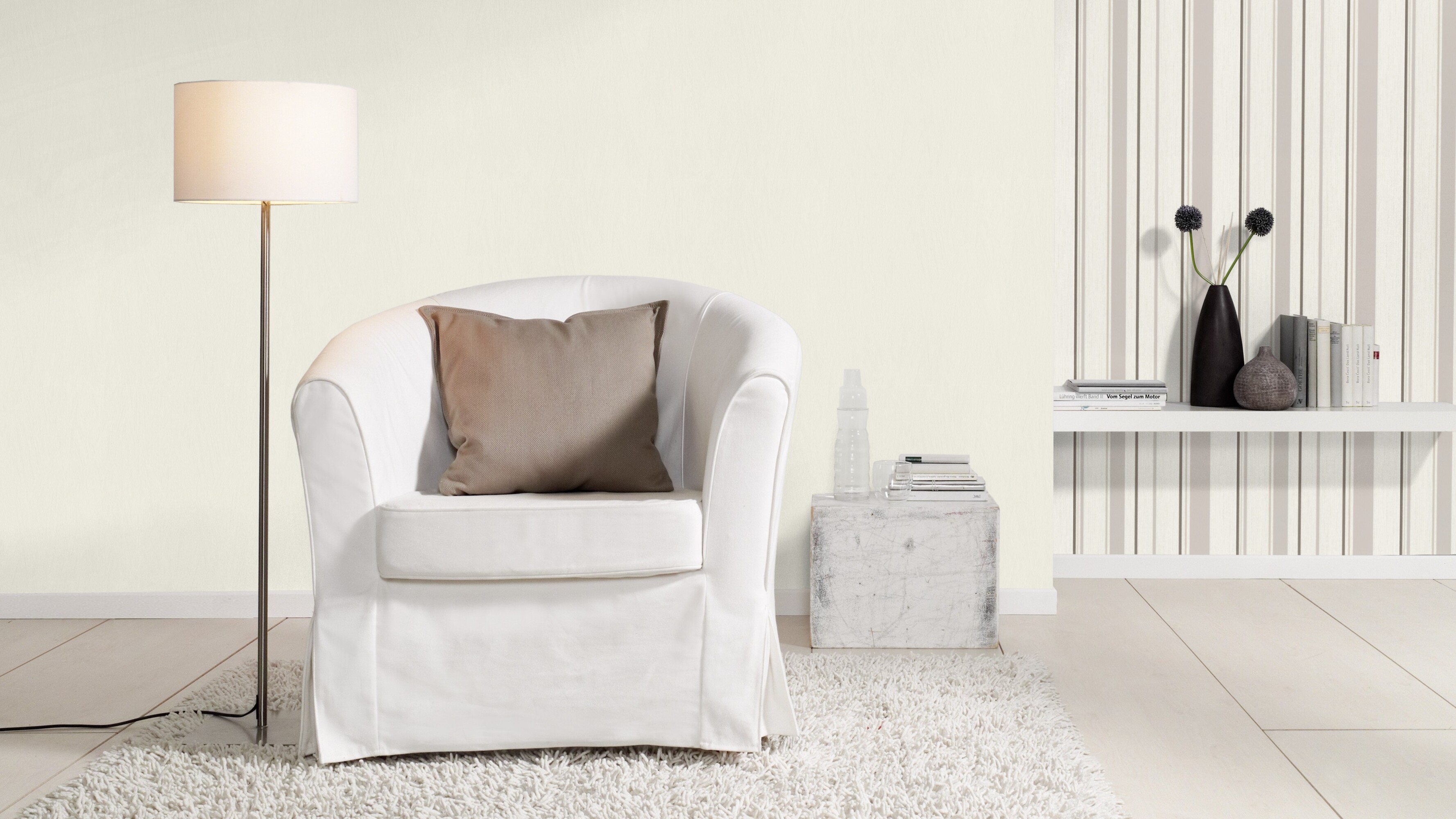 Die perfekte Ergänzung zur luxuriösen Tapetenserie mit Naturelementen und Metallic-Effekten ist dieses Uni. Ebenso wie die beiden dazu hervorragend passenden Mustertapeten zeichnet sich das Uni durch eine dezente Wischtechnik und einen tollen Schimmer aus. Dieser sorgt bei Sonnen- und Lichteinstrahlung für Lebendigkeit an der Wand. In diesem klaren Schneeweiß ist sie der perfekte Hintergrund für verschiedene Einrichtungsstile.