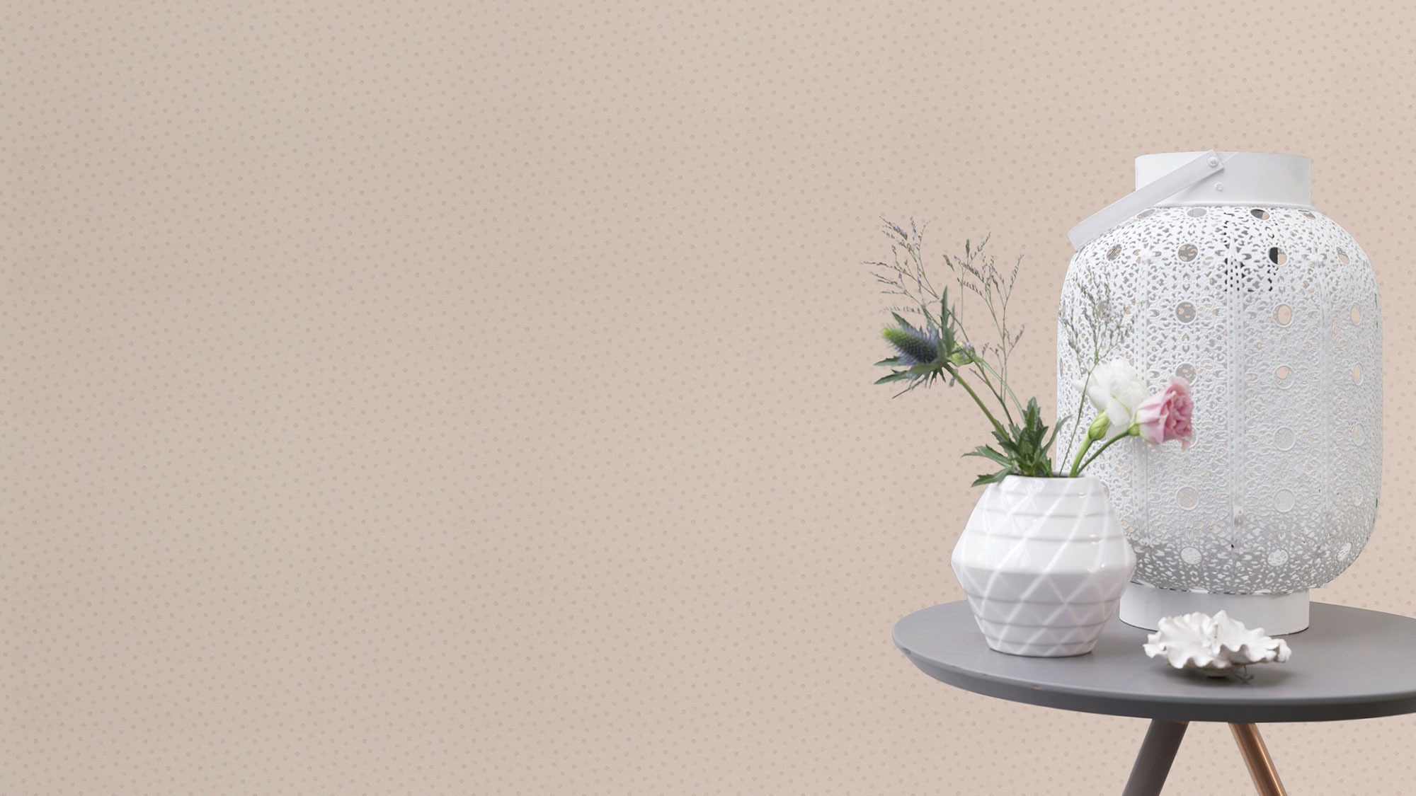 Pünktchen und Anton, Lena oder Oscar? Ganz gleich, wer sich über die neue Tapete freuen darf: das fröhliche Design findet schnell ein Plätzchen im Kinderzimmer. Hellgrau und Rosé wechseln sich dabei munter auf dem pastellrosa Hintergrund ab. Aus der Reihe tanzen ist hier immer erlaubt.