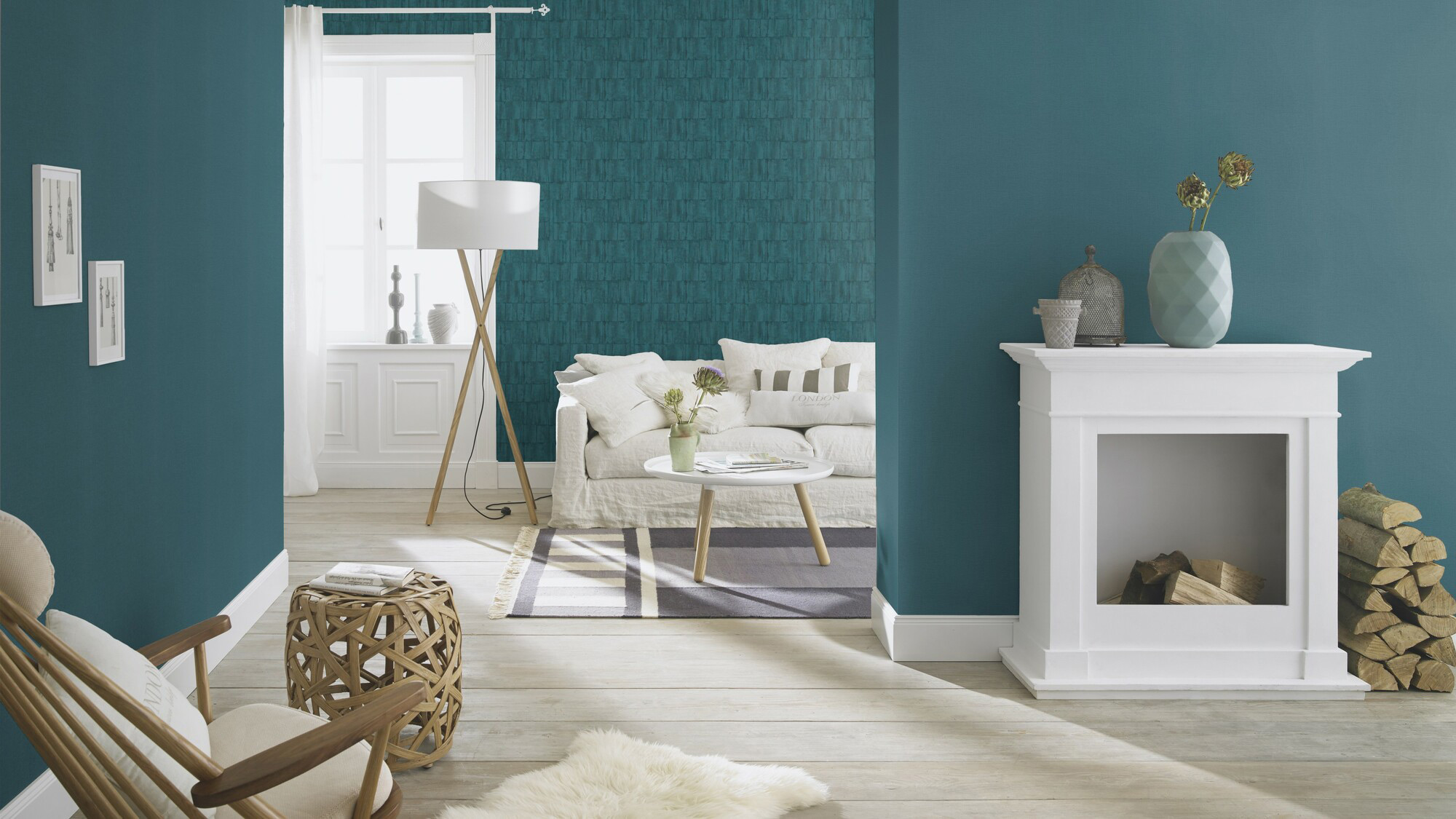 Queens of the stone age: Beton darf nach wie vor in Wohn- und Schlafräume einziehen und überall seinen wunderbar coolen Charme verbreiten. Kein Wunder: denn nichts lässt sich leichter mit Farben und Materialien kombinieren, nichts ist zeitloser und dabei so stilsicher auch an der Wand! Mit der rauen Putzoptik und den blauen Betonnähten macht dieses petrolfarbene Tapetendesign den Industrie-Style hier absolut salonfähig. Beton ist eben nicht nur was für harte Kerle!