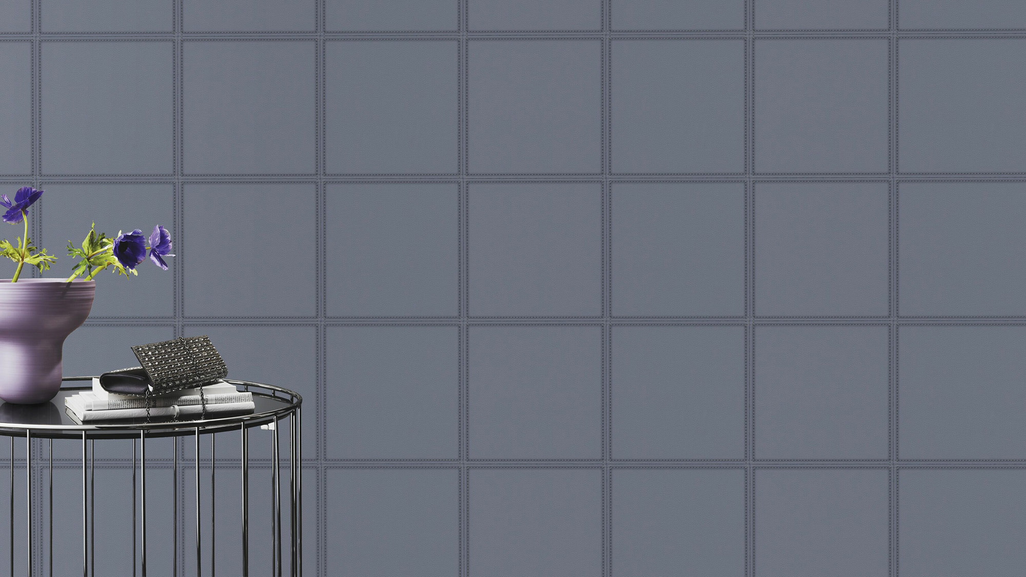 Purer Luxus zieht mit dieser Vliestapete bei Ihnen ein. Keinem Tier wurde etwas zu Leide getan und dennoch erfreuen Sie sich an einer mondänen Lederoptik an der Wand. Die aneinander genähten Lederkacheln in einem sanften Graublau stechen auf angenehme Art und Weise jedem sofort ins Auge und geben Ihrem Mobiliar einen exklusiven Hintergrund.