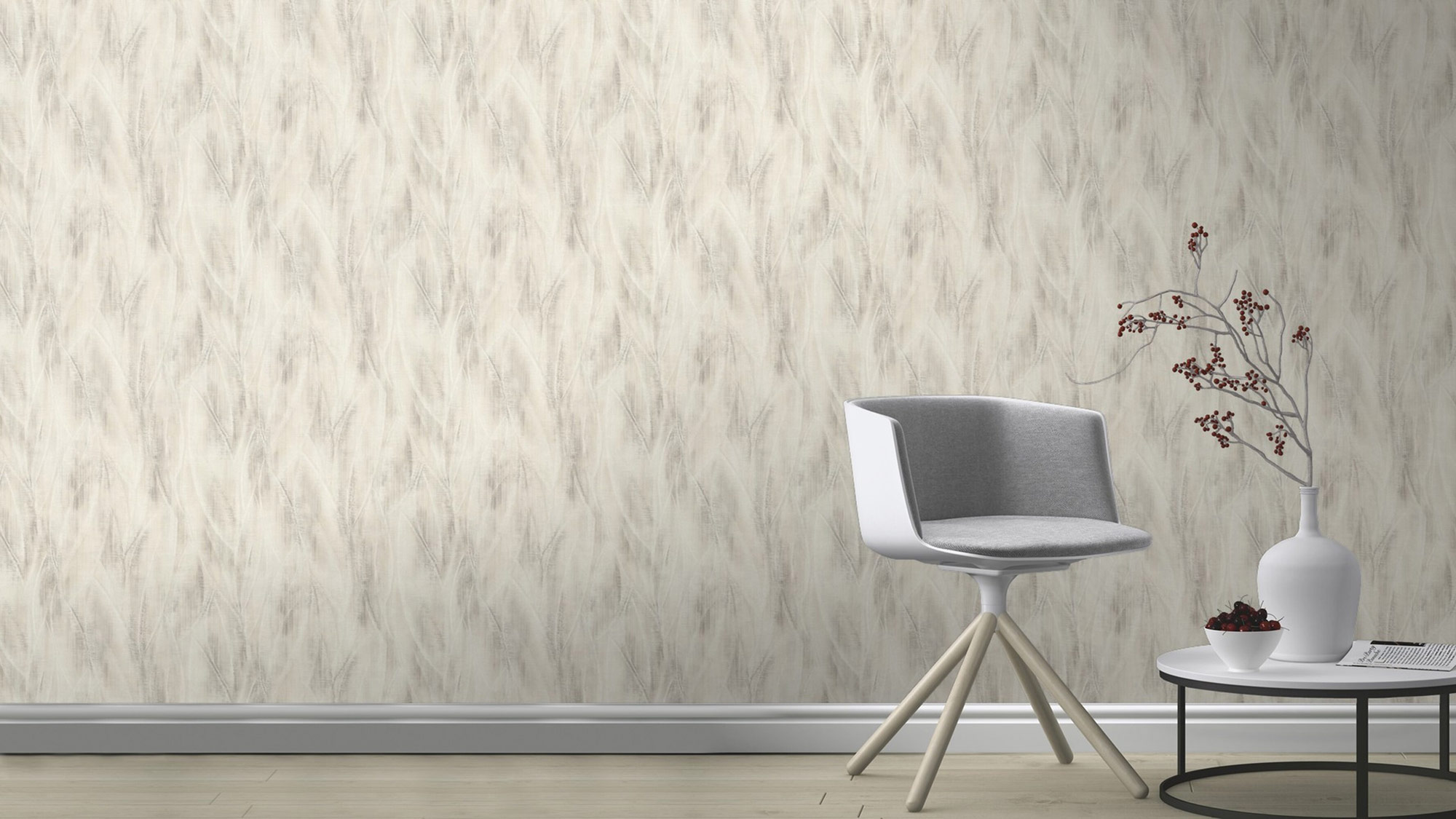 Fein hingeblättert: Abstrakt und künstlerisch zeigt dieses Country-Motiv, wie außergewöhnlich die Natur sein kann. Nur die hellen Umrisse der länglichen Blätter sind zu sehen. Ansonsten scheint alles in Licht und Schatten, helles Braun und warmes Taupe überzugehen. Durch die textile Struktur kann das Farbspiel sogar noch besser zur Geltung kommen. Was für eine schöne Abwechslung!