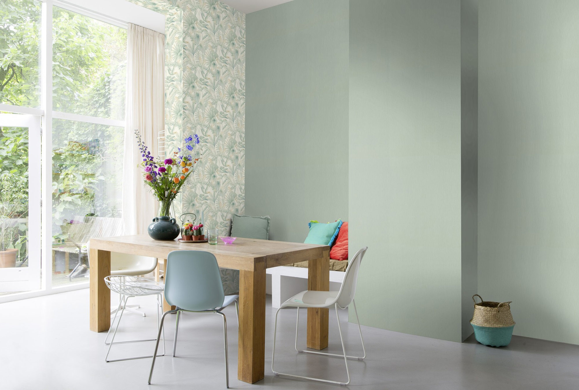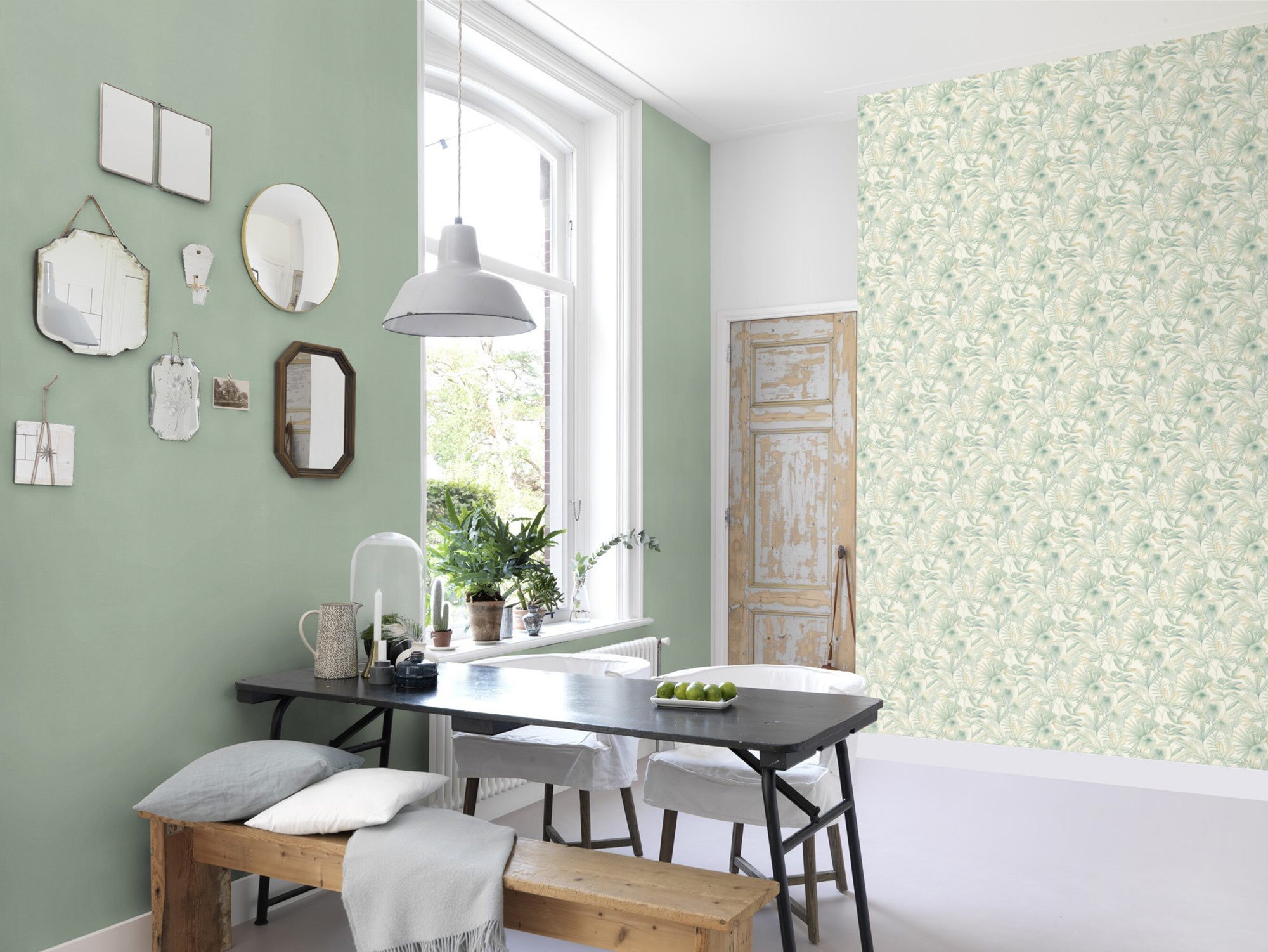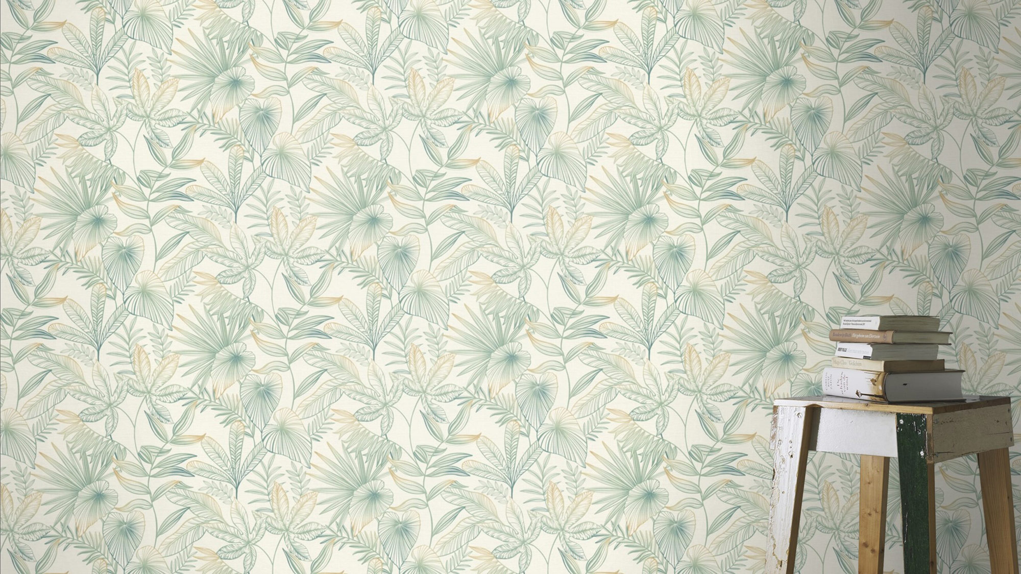 Für alle, die auf die Linie achten: ein Pflanzenparadies kann auch künstlerisch interpretiert werden und Wänden einen neuen Look verleihen. Mit einem feinen Pinsel wurde hier die Natur aufs Tapet gebracht. Dabei geht das dunkle Blattgrün an den Spitzen in ein warmes Sonnengelb über. Ob großflächig im Wohnzimmer oder akzentuiert in der Küchenecke: So beginnt jeder Tag mit einem Strahlen.