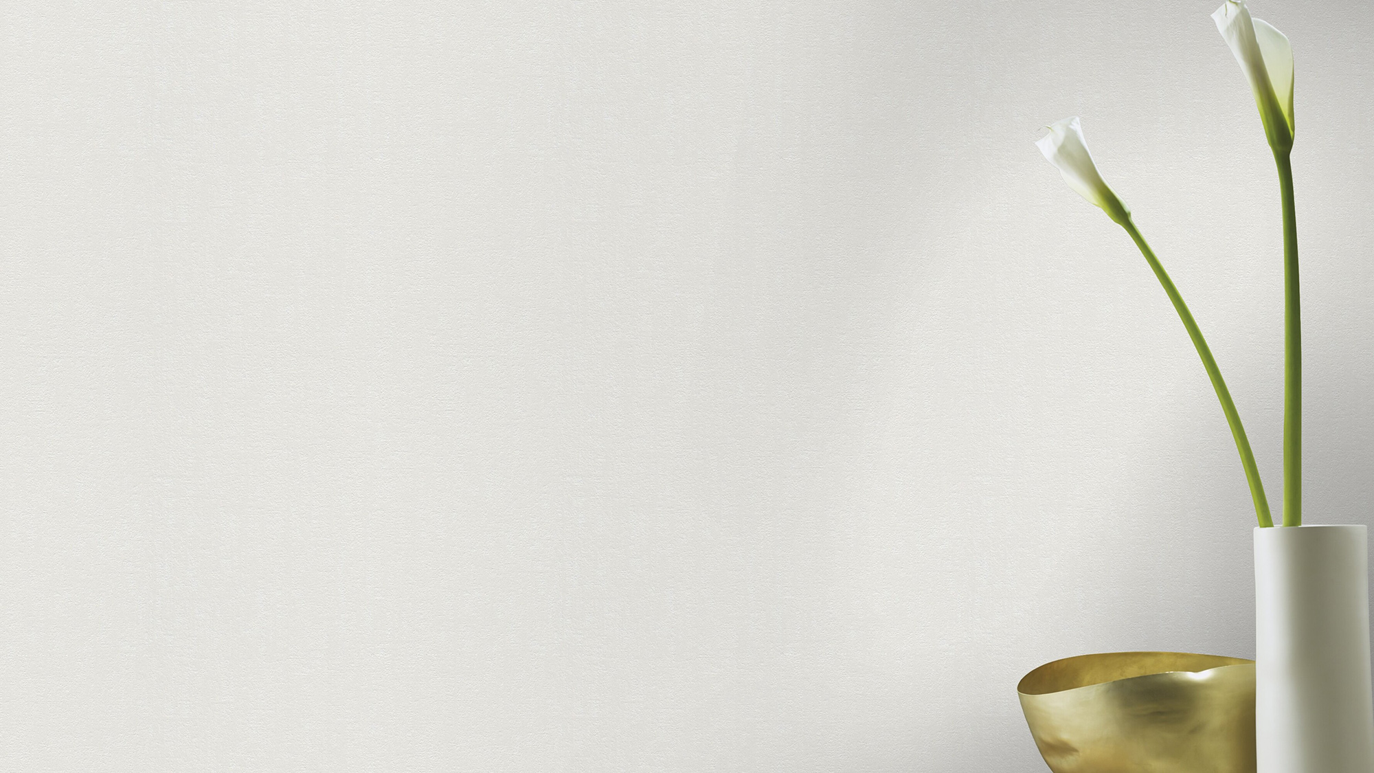 Wie Waschbeton wirkt dieses tolle Tapeten-Uni, das in zartem Ivory und mit weicher Velourshaptik dem Raum eine besondere Tiefe verleiht.