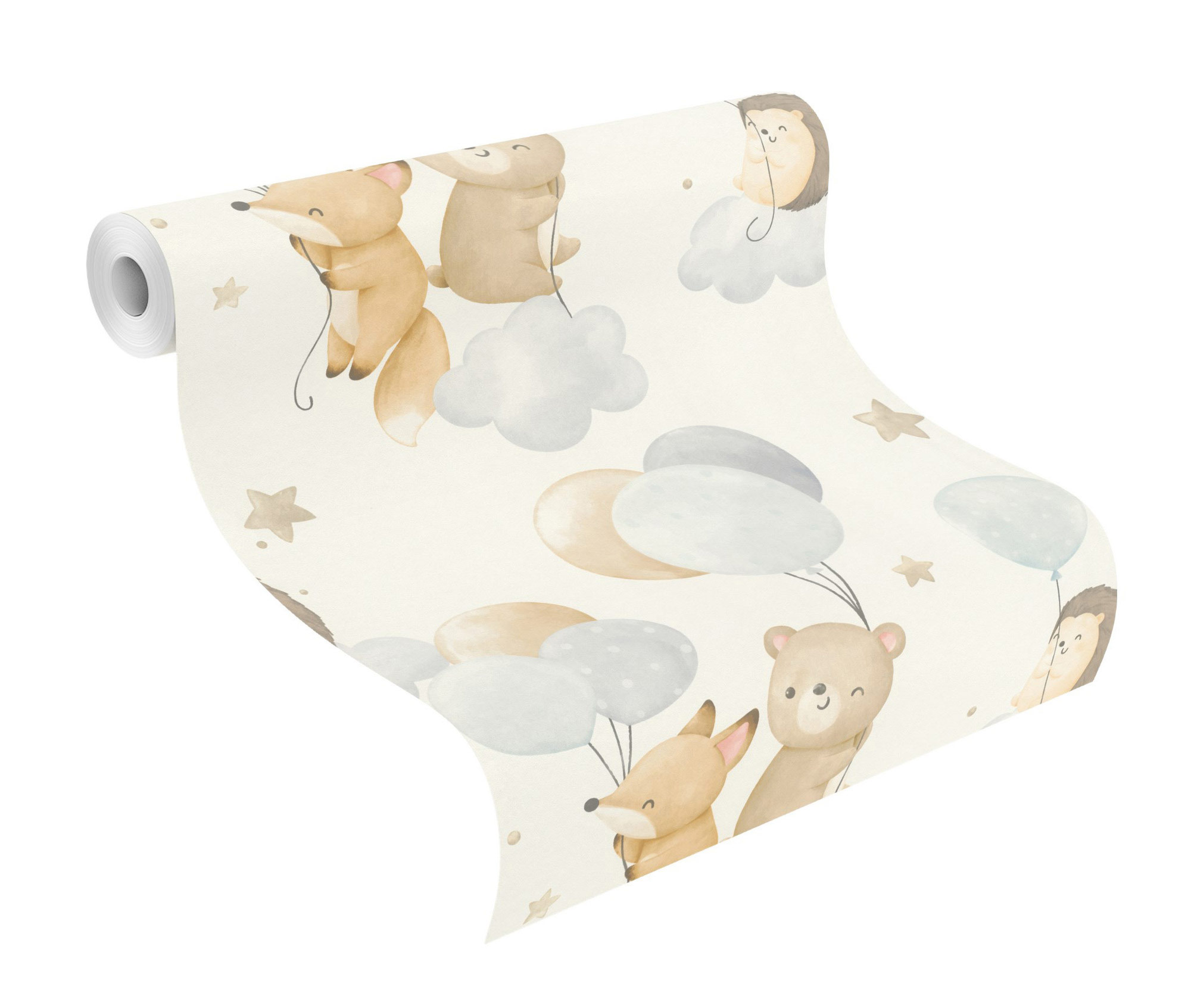Diese liebevoll gestaltete Vliestapete versprüht sanfte Ruhe und Geborgenheit im Kinderzimmer. Niedliche Tiere wie ein Fuchs, ein Bär und ein Igel schweben entspannt auf weichen Wolken, die an zarte Luftballons in beruhigenden Blau- und Grautönen gebunden sind. Kleine Sterne schweben im Hintergrund und schaffen eine magische Traumwelt. Die dezente Farbpalette in Pastellblau und Grau wirkt beruhigend und eignet sich perfekt für eine entspannte Atmosphäre. Die Tapete ist strapazierfähig, leicht anzubringen und besonders kindgerecht ideal für alle, die eine ruhige und zugleich verspielte Einrichtung lieben.