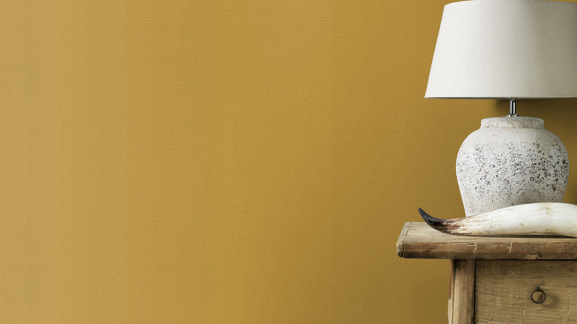 Um sein Zuhause neu einzukleiden, setzt man am besten auf Stoffoptiken. Und gut angezogen ist jede Wand mit feinem Leinen. Diese Vliestapete in sattem Currygelb lässt mit ihrer Textilstruktur den Raum frisch aussehen und verleiht ihm so einen natürlich schönen und klaren Look. Als i-Tüpfelchen ist diese Tapete dank einer neuen Oberfläche ganz einfach und völlig nahtlos zu tapezieren und zugleich sehr strapazierfähig und stoßfest.
