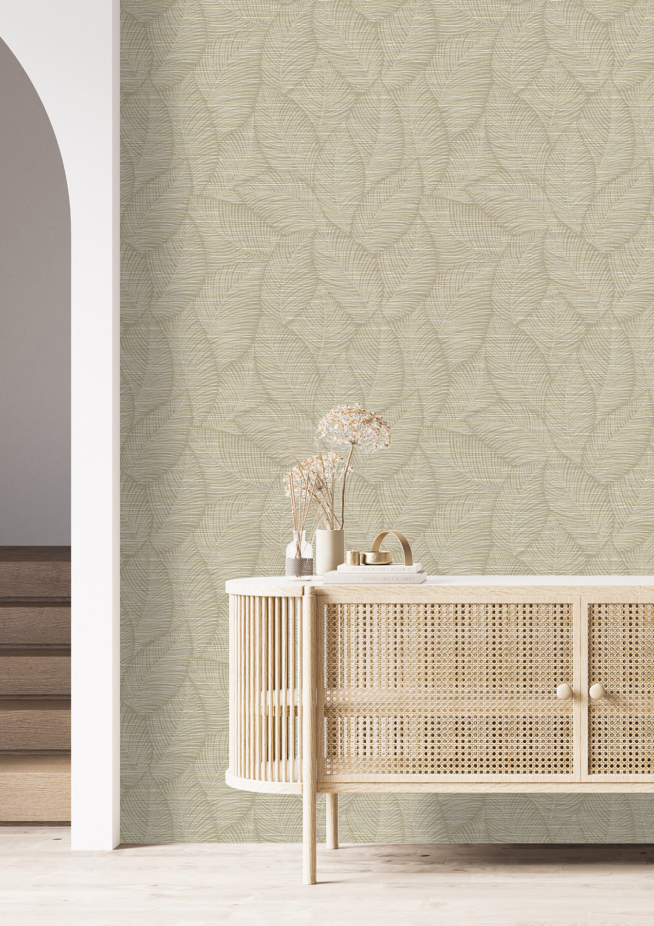 Was für ein großartiges Design hat sich hier an die Wand gepflanzt? Das auffallende Stoffmuster in Cremeweiß und Beige ist ein fantastischer Hintergrund für das dezente, handgemalte Blattwerk in Hellbraun. So bringt diese Vliestapete mit der feinen Struktur ein lebendiges und natürliches Wohlfühlflair mit und ist die perfekte Kulisse für Ihre Möbel und Wohnaccessoires.