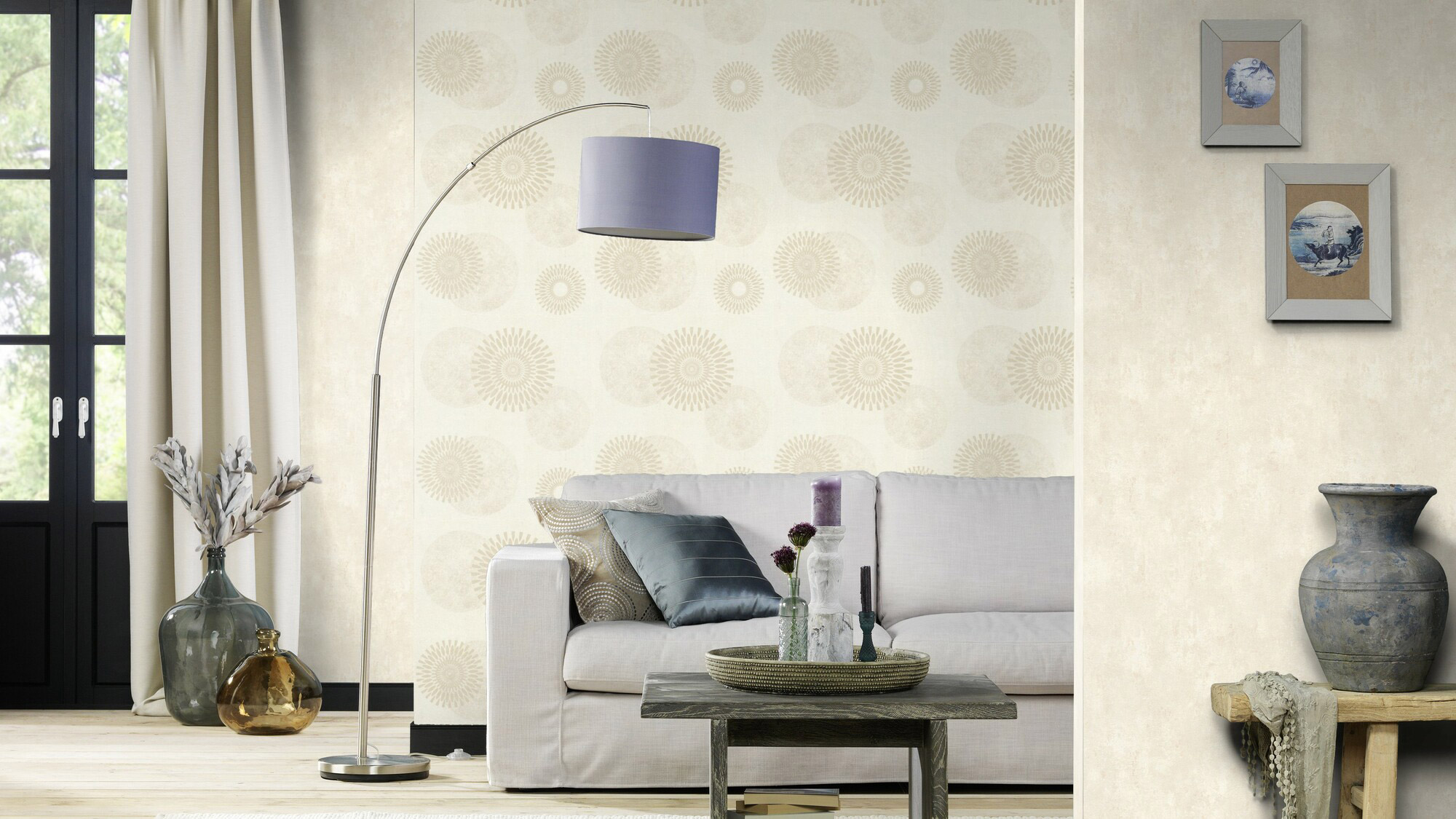 Runde Sache: Mit seinem individuellen Muster und dem künstlerischen Touch lässt dieses Tapetendesign Wohn- und Schlafzimmerwände frisch aufblühen. Silbergrau und Hellgrau sorgen punktgenau für stilvolle Akzente, während sich die großen Kreise eher im Hintergrund halten. Alles andere als dick aufgetragen so gefällt uns das.
