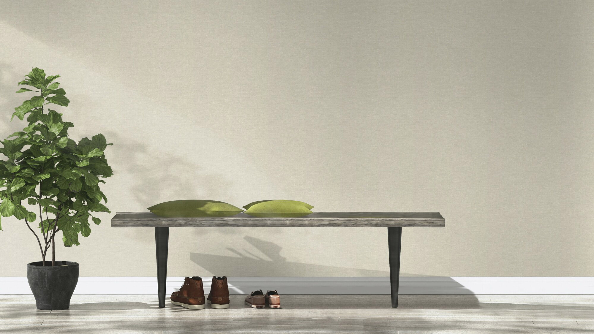 Das könnte uns so passen: Denn diese cremegraue Strukturtapete lässt sich hervorragend auf viele Muster und Motive abstimmen. Auch schön in Kombination mit Werkstoffen wie Holz und Beton oder Trendfarben wie Currygelb, Beere oder Salbeigrün.